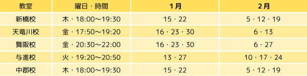 〔 授業実施予定日・時間 〕 ※学校の定期テスト日程等により変更されることがあります。